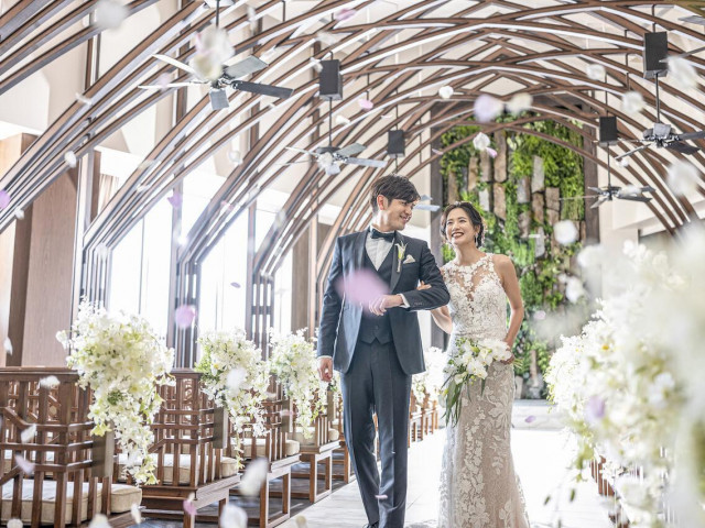 市内最大規模を誇り、高さ6.2mのグリーンウォールの祭壇が象徴的なチャペル。天候に左右されず、屋内にありながらも美しい緑と陽光に包まれた空間で感動の一時を《180名まで着席可》