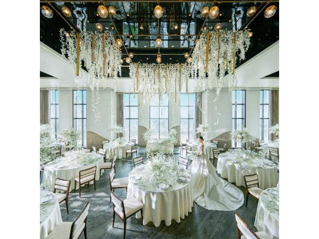 【自然光×眺望が魅力】天井高10m、高層階ならではの絶景が広がる開放的なチャペルでの入場体験。9:00フェアのみ外国人シンガーによるゴスペル演出もご体験頂けます※当日の結婚式により変更の可能性あり