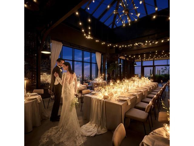 ホテル最上階に位置するグレイッシュな空間×東京では珍しいルーフトップテラスも完備されたNYテイストの会場【LOFT】。5つ星ホテルのおもてなしディナー×結婚式。40名198万円~ご案内できる限定フェア