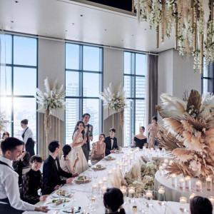 ラウンジやキッチンまでフロアごと貸切にでき、披露宴は3時間とゆとりのある設定で、