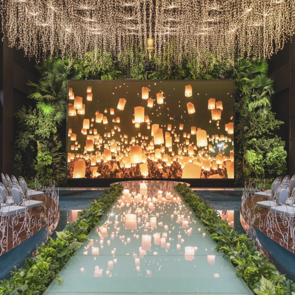ブルースター挙式料には式進行・音楽・照明演出などが含まれます。