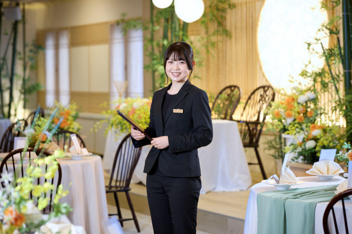 乃木會館ではプランナー、衣裳、美容、調理など結婚式における各分野のプロフェッショナルが集まっており、その全てが自社スタッフのため、一丸となって結婚式をトータルでサポートすることができます。結婚式当日が特別な日となるようそれぞれが「よりそひ」のこころを持ち、ご夫婦になられるおふたり、そして大切なゲストの皆さまに心を込めた接客でおもてなしいたします。