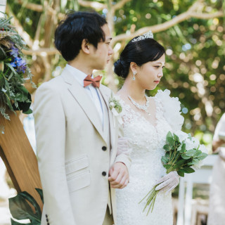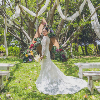 大きなガジュマルの木に装飾を施してくれて、リゾート挙式らしい素敵な雰囲気でした。当日はとても日差しが強く、直射日光が厳しかったですが、たくさんの木々からの木漏れ日が日差しを和らげてくれ、風が吹けば多少涼しく感じられました。親族のみのパーティでしたが、貸し切り状態で楽しく食事が出来ました。大きな窓に囲まれていたので、外に見える自然や日の光がとても素晴らしかったです。新婦ヘア&メイクを付き添い1へアップグレード、ブーケのアップグレード、撮影プランに2ヶ所のロケーション撮影を追加特典プランとして6名分のコース料理をつけてくれた点、衣装が選び放題な点はかなり費用を抑えられました。会場装飾を自分達で用意したので、オプション価格より安く用意する事がら出来ました。沖縄の食材を使った料理は全てとても美味しく、見た目も華やかでした。参列者にキッズがいたのですが、好き嫌いの食材も柔軟に対応して下さり、とても喜んでくれていました。リゾートホテルの敷地内ということもあり、挙式会場やロケーション撮影などリゾート感溢れる会場雰囲気でした。打ち合わせや相談は全てメールやzoomでのやり取りでしたが、聞きたいことは全て具体的に分かりやすく説明してくれました。挙式当日はパーティまでの付き添いメイクプランにしてもらいましたが、汗やメイク直しは必須だったので、付き添いにしてもらって正解でした。なんといっても挙式会場のガジュマルの木が良い!装飾も綺麗にして頂き、素晴らしい会場でした。挙式に必要なものを郵送して預かってくれたので当日は荷物も少なく臨めましたが、挙式後のたくさんの荷物を持ち帰るのは大変でした。詳細を見る (694文字)