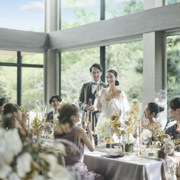 心地よい風を感じながら、自然光が差し込む開放感たっぷりの迎賓館で美食を堪能。どの季節でも緑を楽しめる、大切なゲストを非日常的な空間でおもてなし。