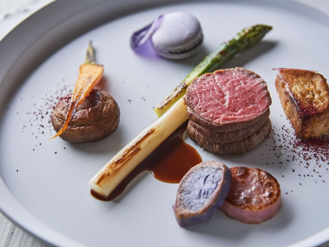【五感をふるわす魅惑の料理】国産牛×トリュフをはじめとする厳選食材を活かしたシェフの技が光る味わいを、彩り豊かな盛付や芳醇な香りと共に五感で愉しんで!2日前以降の予約の場合デザートのみの提供となります
