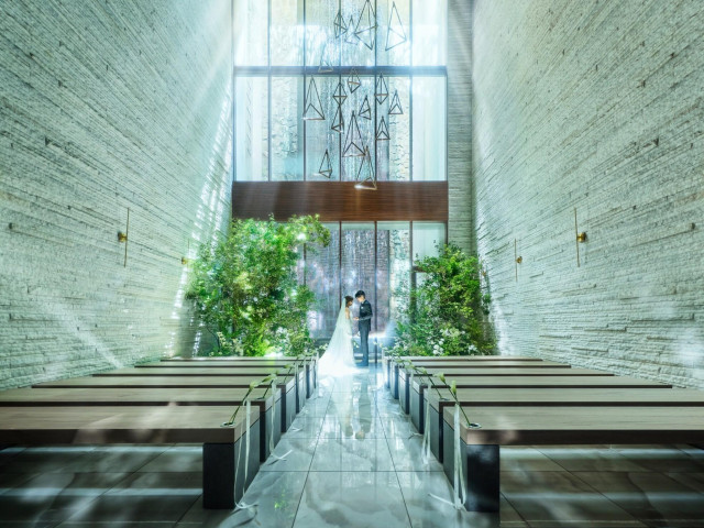 | おすすめ ポイント | 祭壇の先にある高さ12mから流れる滝が印象的なチャペルは、3フロア吹き抜けという格別の開放感!聖歌隊の美しい歌声が心地よく響き渡る感動の挙式を |