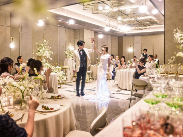 【最旬パーティ会場を見学】ハイセンスな世界観でありながら居心地の良さにもこだわった洗練空間。シンプルで上品な空間はそのものがアートとなるようなパーティー会場。おふたりとゲストの記憶に残る結婚式が叶う。