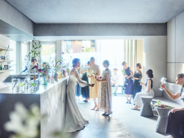 【AM来館なら本番直前の様子を見学可能♪】表参道駅徒歩2分のこだわり隠れメゾン。1組のみ全館貸切。研ぎ澄まされたシンプルでリラックスできる心地良い空間で大人ウエディングを実現。