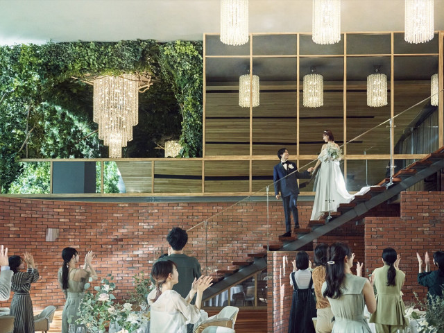 おすすめ ポイント | 美しい放物線を描く木の天井やオークの床、大きな窓から射し込む陽光。 高さ8mの開放感と自然の癒しに満たされたパーティフロア”Nature Rich”で、 東京でいちばん新しい”ウエディングのカタチ”。