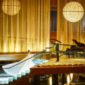 ギャラクシー(40~120名様)木の葉をモチーフにした照明のインテリアが醸し出すプライベートな寛ぎと、落ち着きのある大人の雰囲気です。会場使用料はプランに含みます。