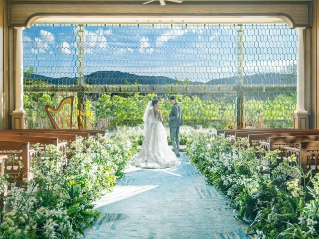 【選べる挙式スタイル】オークガーデンの陽光溢れる上質チャペル/鴨川を見渡すガーデン挙式は、四季が彩る京都の風景までもゲストへの贈り物に