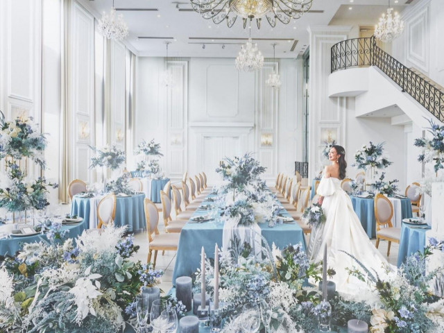 【天高10M、自然光あふれる感動チャペル体験】純白の大理石のバージンロードと美しいブルーのステンドグラスが輝く、高さ10Mの天井に響き渡るパイプオルガンの音色、感動に満ちた入場シーンを体験してみて