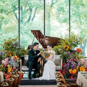 TIADにある木目調の挙式場では和装をお召しになった人前式も叶う。3つのご披露宴会場はどれも久屋大通公園の緑を一望する、自然をコンセプトにしたご披露宴会場。なので和装洋装どちらのお召し物でも、新婦様をより引き立ててくれます。
