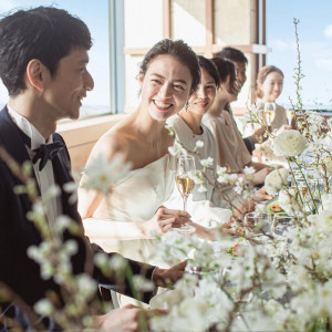 40階にあり、大きな窓があるためとても景色がよく、晴れていたらもちろん、曇りでも全く問題がないほど素敵な景色が見えます。会場は白が基調で、結婚式というイメージそのままです。披露宴会場も40階にあるため、景色がとてもよく、明るく開放感がありました。少人数婚にもぴったりなレストランウェディングができる会場もあり、みんなとの距離感も近く、一人一人のゲストを大切にできる会場でした。ゲストの食事、飲み物はしっかりとお金をかけました。オリジナルメニューに対応しているので、私たちの思い出をゲストのみんなに伝える事もでき、よかったです。もちろん料理は本当に美味しくて、量もしっかりあるため、ゲストに大満足していただけました!名古屋駅から地下を通っていけるため、雨でも安心ですし、初めてくるゲストも迷わずに来れると思います。打ち合わせを何度も行ってくれますし、わからない事はいつでもメールで確認できたので、とてもありがたかったです。オリジナルメニューがあるところがオススメです。また、結婚式当日にはプランナーさんも常にそばにいてくれますし、メイクさんもそばにいてくれるので、安心して進めまれました。初回打ち合わせが始まってからすぐに、ペーパーアイテム類の準備に取り掛かると、直前とてものんびりと過ごすことができました。それでも、初回打ち合わせまでにもっと情報を集めたおけばよかったと後悔したので、気をつけてみてください。詳細を見る (604文字)