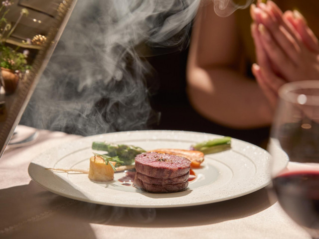 「美味しいのは当たり前」3か月に一度コースを一新し、その時期に最旬を迎える道産食材をふんだんに使用したお料理の数々は、オープンキッチンやインナーガーデンで楽しめるなど提供方法にこだわっている。