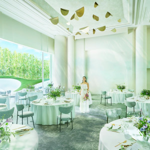 | おすすめ ポイント | 祭壇には緑が多くあしらわれ、両サイドには水面が揺らめきます。水面に反射するきらきらとした光や、天井まで高く響き渡る音楽もまた、ふたりの誓いの瞬間を特別なものにします。 |