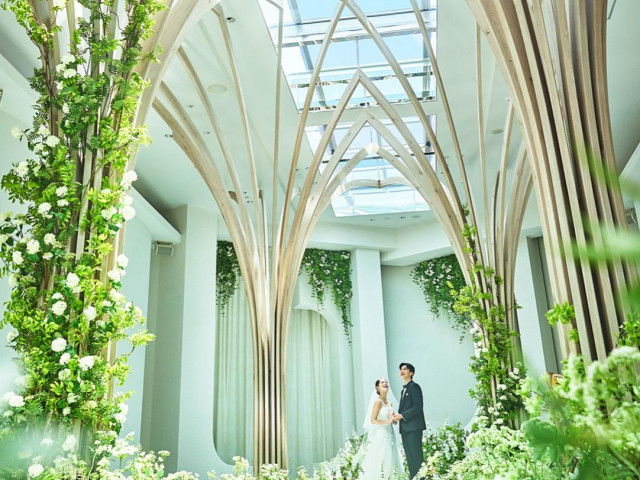 | おすすめ ポイント | 祭壇には緑が多くあしらわれ、両サイドには水面が揺らめきます。水面に反射するきらきらとした光や、天井まで高く響き渡る音楽もまた、ふたりの誓いの瞬間を特別なものにします。 |
