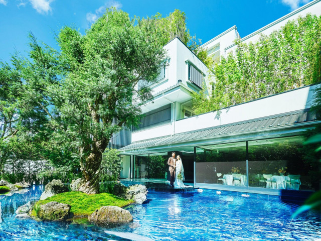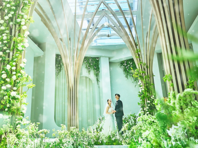 | おすすめ ポイント | 祭壇には緑が多くあしらわれ、両サイドには水面が揺らめきます。水面に反射するきらきらとした光や、天井まで高く響き渡る音楽もまた、ふたりの誓いの瞬間を特別なものにします。 |