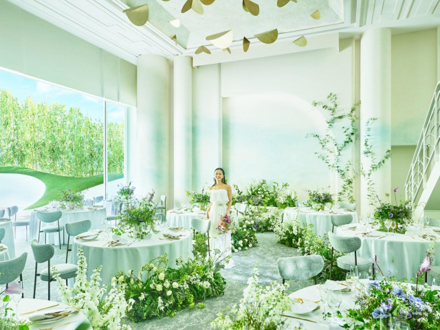 【選べる3つのパーティー会場*フロア貸切】好立地でありながら、美しい庭園が広がる非日常空間!憧れの大階段入場が叶う2フロア吹き抜けパーティ会場/窓一面に庭園を望む会場など多彩!ガーデンテラス隣接も魅力♪