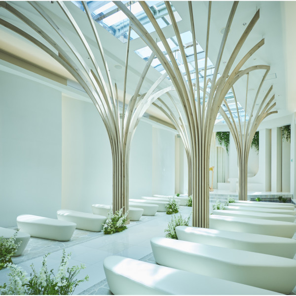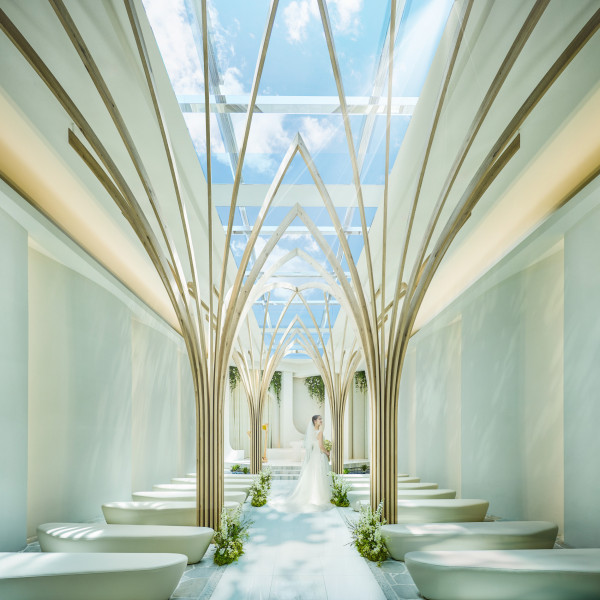 おすすめ ポイント | 祭壇には緑が多くあしらわれ、両サイドには水面が揺らめきます。水面に反射するきらきらとした光や、天井まで高く響き渡る音楽もまた、ふたりの誓いの瞬間を特別なものにします。 |