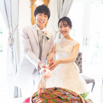 生クリームが苦手なお二人はデートで大好きなうなぎを食べに行くと聞き、大きなうな重セレモニーを行いました!入刀したアイテムは宮島でオーダーメイドのしゃもじを使用♡お二人の名前も入ったアイテムで二人らしい演出が完成しました。