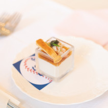 ドラゴンズファンのお二人は会場コーディネートや衣装もまさにこだわり空間!そんな中、お料理のおもてなしでは1品目のアミューズにもドラゴンズテイストを取り入れてみました♪