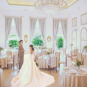 おすすめ ポイント | 天井高6mと開放的な空間にたっぷりの降る注ぐ自然光と、3基のシャンデリアが煌めく