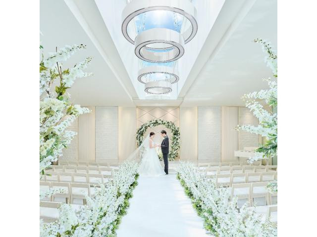 【青空と緑に包まれる洗練チャペル】天窓から差し込む自然光が花嫁を美しく彩る人気チャペル♪プロジェクションマッピングのドラマチックな挙式/ふたりらしさが伝わるオリジナル人前式など多彩な挙式スタイルが魅力