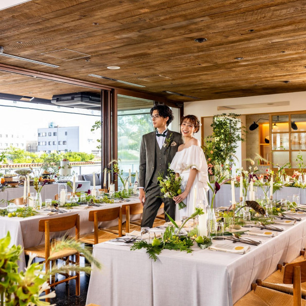 おすすめ ポイント | 中川運河をのぞむ景観がふたりの自然体な美しさを引き立てます。落ち着きのある雰囲気で、訪れるゲストにもくつろぎの時間をご提供します。