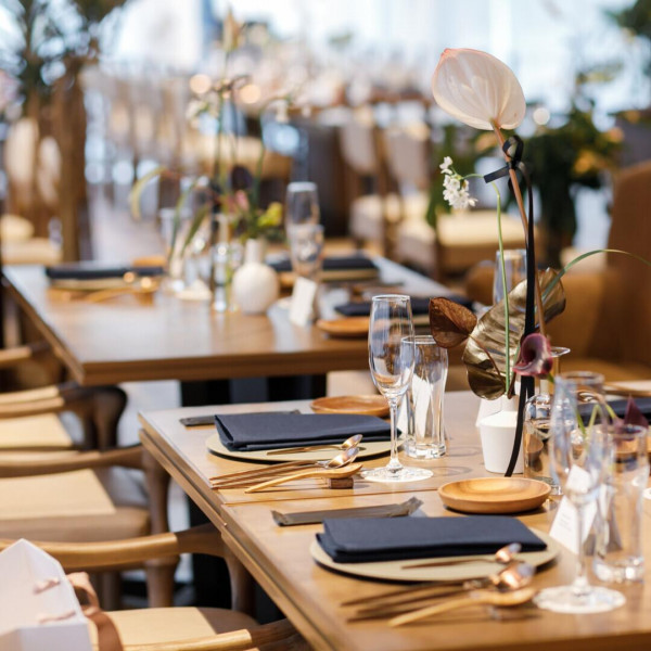 会場使用料・貸切料人気のBARも併設されたこだわりのレストランを完全貸切!窓から差し込む光が開放的な雰囲気を演出。