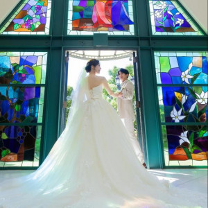 ステンドグラスに光が差し込み綺麗。緑が正面に有り、爽やかな雰囲気。ガーデンが有り緑が綺麗。式場の花やクロスなども選択出来、好みの色調に出来る。お料理のランクアップ(値引き利用)送迎バス参列の方からも、美味しいとのお声を頂いた。デザートビュッフェも充実!式場までは,駅からは少し離れているが、人数により送迎バスがサービスで用意されるので良かった。ベテランの司会者の方か、プランナーもされており、相談し易く信頼出来る。信頼出来たプランナー兼司会者の方早くから準備していても、間際で気付く事がアレコレ出て来るので、流れをイメージして何をやりたいかを考え、思い付いた事から早めに相談するのが良いかと思います。(プロのアドバイスに頼る)詳細を見る (313文字)