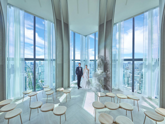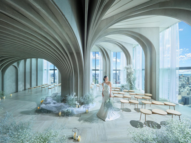 \地上150m最上階を1フロア贅沢貸切/御堂筋エリア最高層◇空の眺めとともに誓うとくべつな時間。モダン建築と自然が織りなす美しい場所、une osakaを体感出来るフェア◇星付き豪華試食付き!