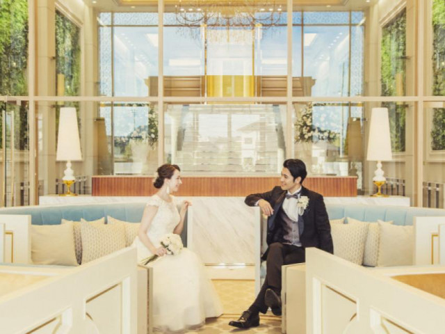 【憧れの階段入場を体験】高さ7mの開放感ある窓からは自然光がたっぷりと差し込み、プライベートテラスではガーデンパーティーも◎印象的な3Dプロジェクションマッピング演出も可!ゲストの記憶に残ることでしょう♪