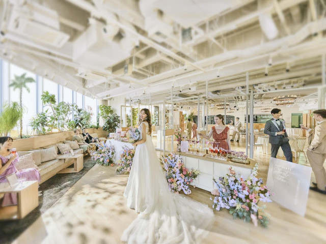 【飾り過ぎず、ほどよい抜け感のあるお洒落な空間】贅沢にフロア全面を貸切り、ふたりの想いやコンセプトを表現した空間を創りあげる。時には結婚式の通例に捉われず、ふたりの想いを最優先にした提案をすることも!