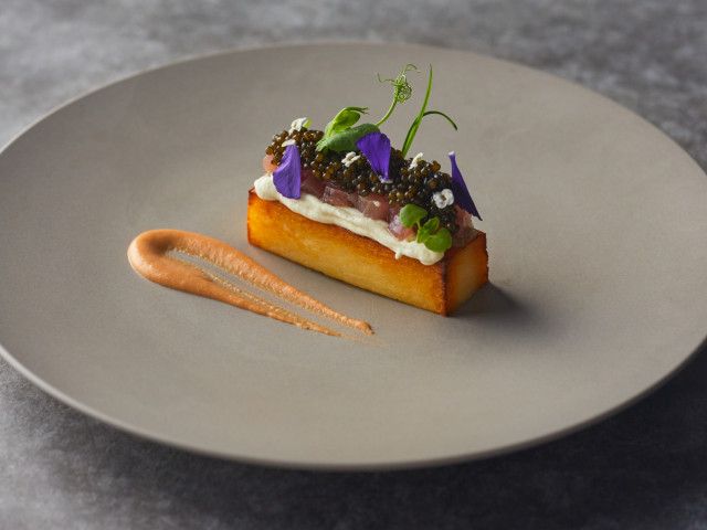 【センスと独創性が光る料理】当館で提供される料理は、フレンチと日本料理を融合させた「ヌーヴェルキュイジーヌジャポネ」で創り上げる。味はもちろんだが、見た目や香り、演出でもゲストの心を満たしていく。