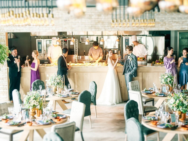 【自由に染め上げられる2つの貸切空間】フロア全面を貸切れるパーティ会場は、シンプル×トレンドを極めた洗練された空間!両会場にはフルオープンキッチンも完備、五感で愉しめる料理提供にも定評がある。