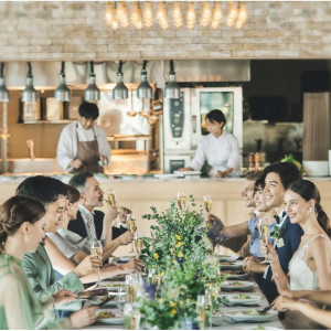 ワンフロア全面を貸切ることができるから、他の結婚式のゲストと鉢合わせすることもなくプライベート感ある空間でゆっくりと過ごすことも。オープンキッチンの前にテーブルをセッティングすれば、目の前で料理が仕上げられるパフォーマンスを楽しむことも。