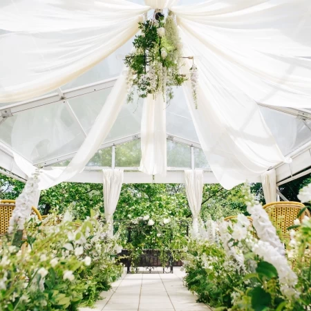 屋根がついているので天候には左右されずにガーデン挙式が可能です。