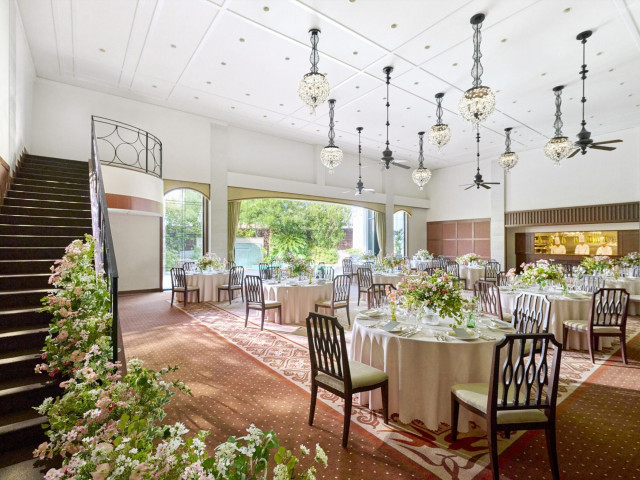 | おすすめ ポイント | オープンキッチンや階段を備えた会場はどんなコーディネートにもぴったり!ガーデンに直結しているので自然光が差し込み明るい雰囲気に。シンデレラ階段からの入場は女の子の憧れを叶える演出。