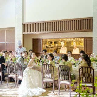 憧れの大階段での入場や、煌めくガーデンプールでの演出。