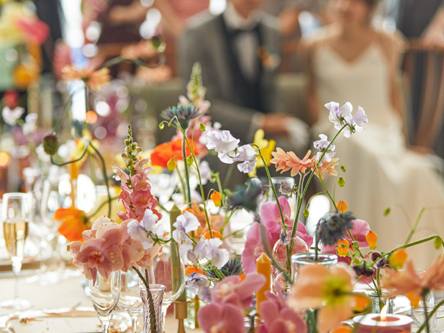 【抜群の海見えロケーション×自由度◎な上質空間】先輩花嫁の写真を交え、自社フローリストが手掛ける最新トレンドのコーディネートをご紹介。テーブルクロスやナフキンなど多彩なアイテムで、おふたりらしい空間に