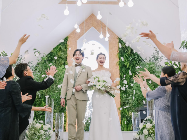 新幹線停車駅から徒歩3分なので遠方ゲストも安心。無料駐車場もあるので地元の方も集まりやすい好立地です。隣が緑豊かな公園なので、ゆったりと静かな空間の中で結婚式が叶います。