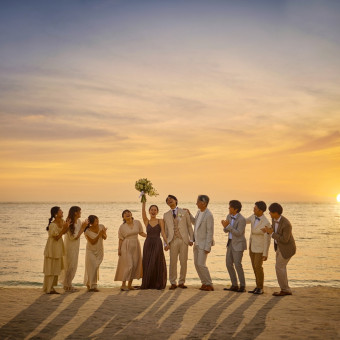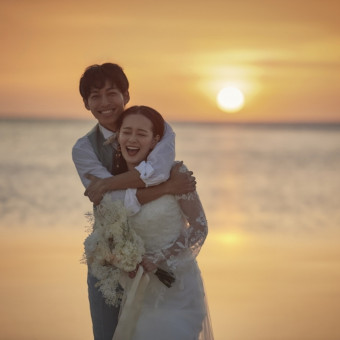 ザ・ヨミタンリゾート アクアグレイス・チャペル目の前の宇座ビーチでのサンセット撮影。