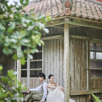 ザ・ヨミタンリゾート アクアグレイス・チャペル近くにある「むら咲むら」という沖縄らしい古民家や自然あふれる観光スポットでの撮影。