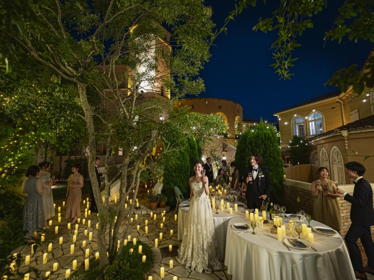 南フランスの街全体の自然を感じていただきながら、ガーデンにてウエルカムパーティーやケーキセレモニー、ビュッフェセレモニーを楽しむことが出来ます。