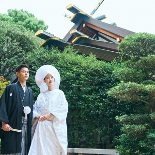 白無垢や色打掛といった和装が映えるのは、四季の彩りと静けさに包まれる境内や中庭。厳かな神殿の佇まいと調和し、花嫁をいっそう美しく引き立てます。伝統と自然美が融合した空間で、日本らしい結婚式の情景を写真にも残せます。