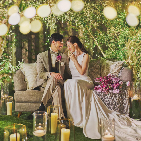ワンランク上の上質ウェディングが叶うトワイライトパーティプランが登場!緑と水に囲まれた貸切ガーデンがキャンドルの光で一番美しく輝く空間に■タクシーチケット招待状枚数分プレゼント等