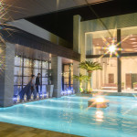 おすすめ ポイント | 高さのある天井と真ん中に炎が点火するプール |