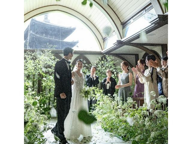 【チャペル入場体験】京都のシンボル「八坂の塔」を望むチャペル。おふたりはもちろん、大切なご家族との絆を感じる感動的なセレモニーで、人生で最も大切な時間をお過ごしください。