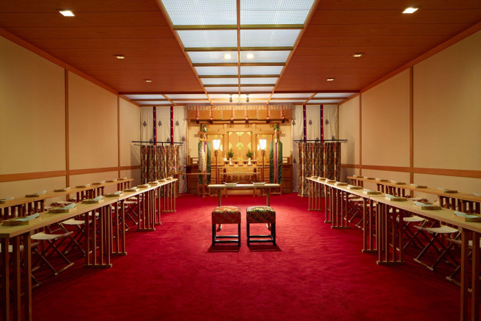 楽土の雅楽、巫女による鈴の儀などが、背筋が伸びるような心地よい緊張感をただよわせるなか、三三九度などを執り行う古式ゆかしい儀式は、心にじんと刻まれる。